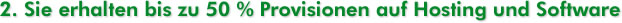 Wir bringen die Webseiten Ihrer Kunden ins Netz. Auf diese Umsätze bezahlen wir Ihnen bis zu 50 Prozent Provisionen. Monat für Monat! So können Sie sich ein schönes und stabiles Zusatzeinkommen aufbauen. Wir sind ein Qualitäts-Hoster mit bewährter "Schweizer Qualität", der auf Firmenkunden spezialisiert ist: